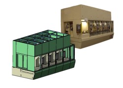 Schutzverkleidung an einer Honmaschine im Modell und an der Maschine montiert.