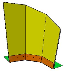 Model einer 3 teiligen Holzwand, die in einem Stahlplattensockel verschraubt ist.